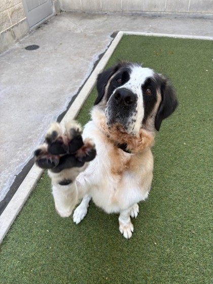 Say hello to Francis! This sweet 5-year-old Saint Bernard joined us in late August when her previous family experienced a lifestyle change. They told us that Francis is a sweet and happy dog who enjoys playing and going on walks! They also mentioned she knows quite a few commands, such as ‘sit', ‘down', ‘shake', ‘paw', and more! Francis would do best in a family with no young children, but she gets along great with other pets, especially dogs. She has been a bit shy since joining us at the shelter, but after she has some time to warm up to new people, she does great! Come and spend some time with Francis; she may just become your new best friend!